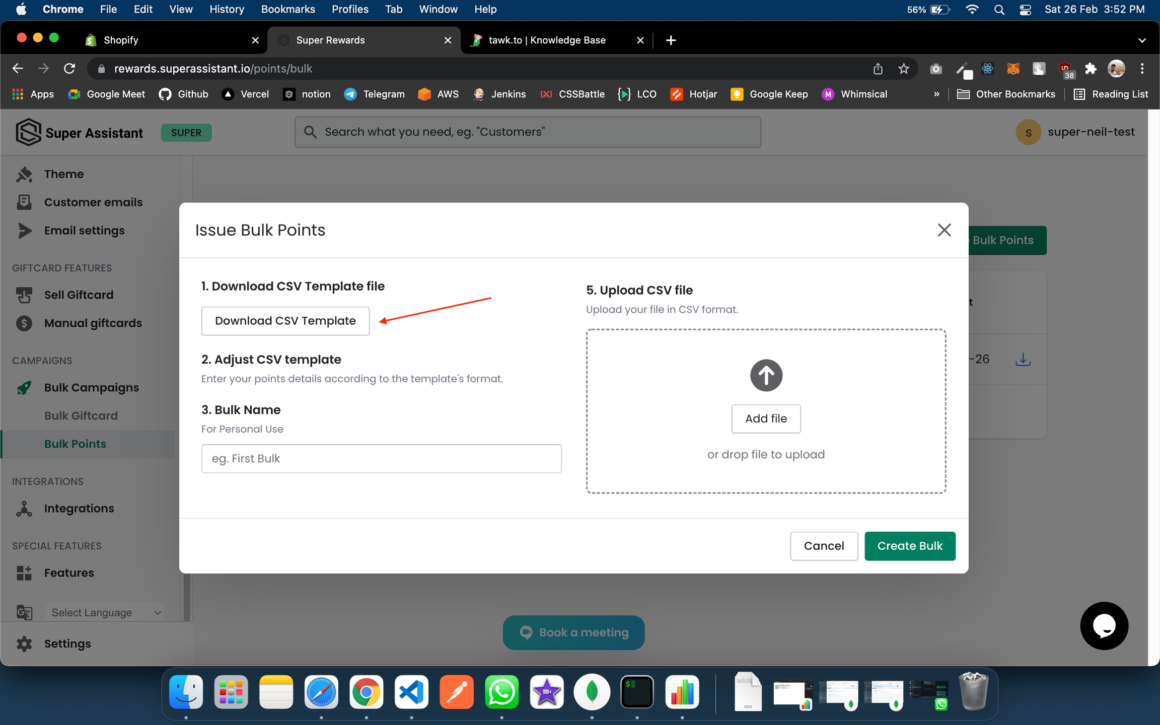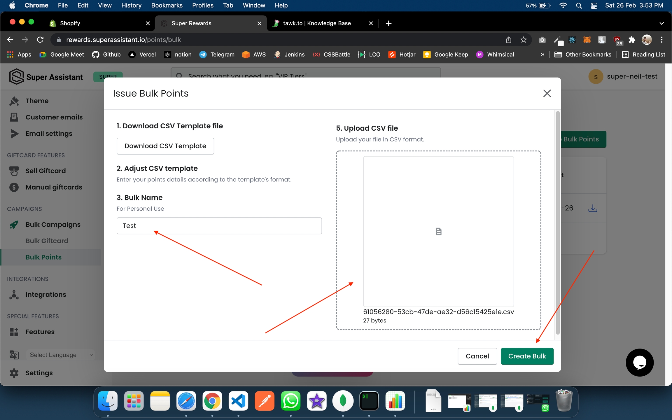 STEP 3: Enter the Bulk Name and upload the adjusted CSV and Click on Create Bulk.
